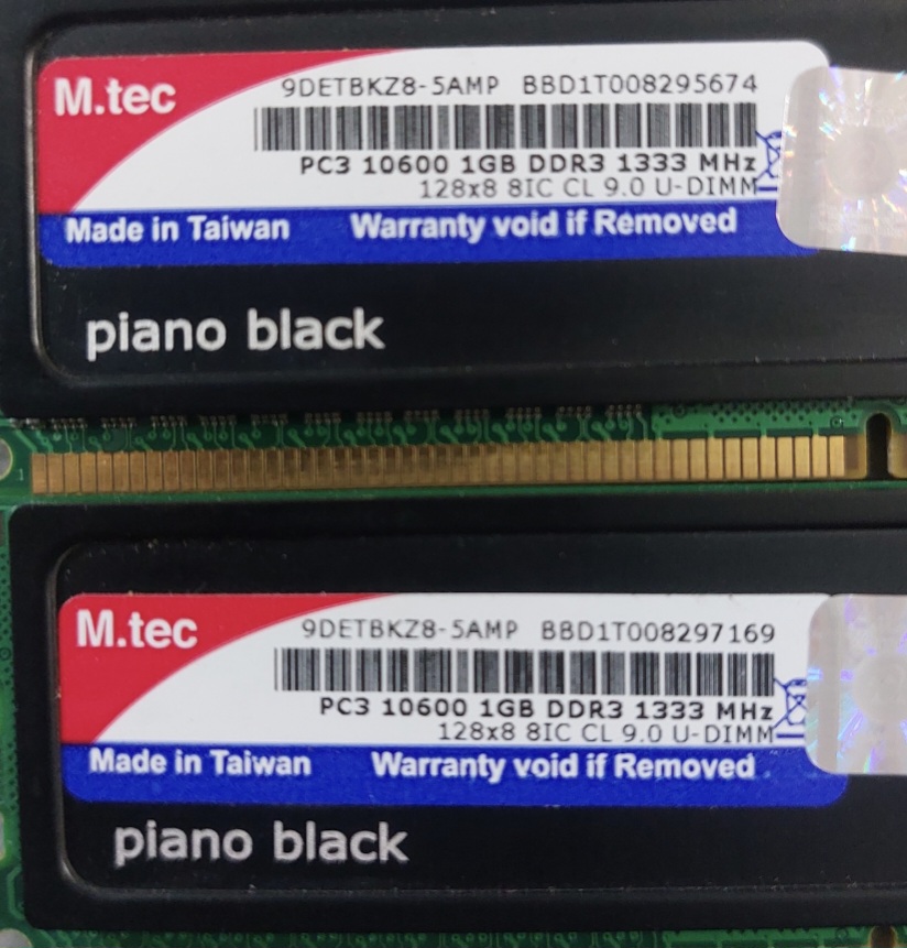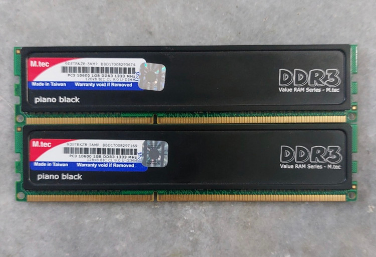 مقدار حافظه: دو عدد 1 گیگ مشابه مطابق تصویر در مجموع ۲ گیگ دوآل کانال