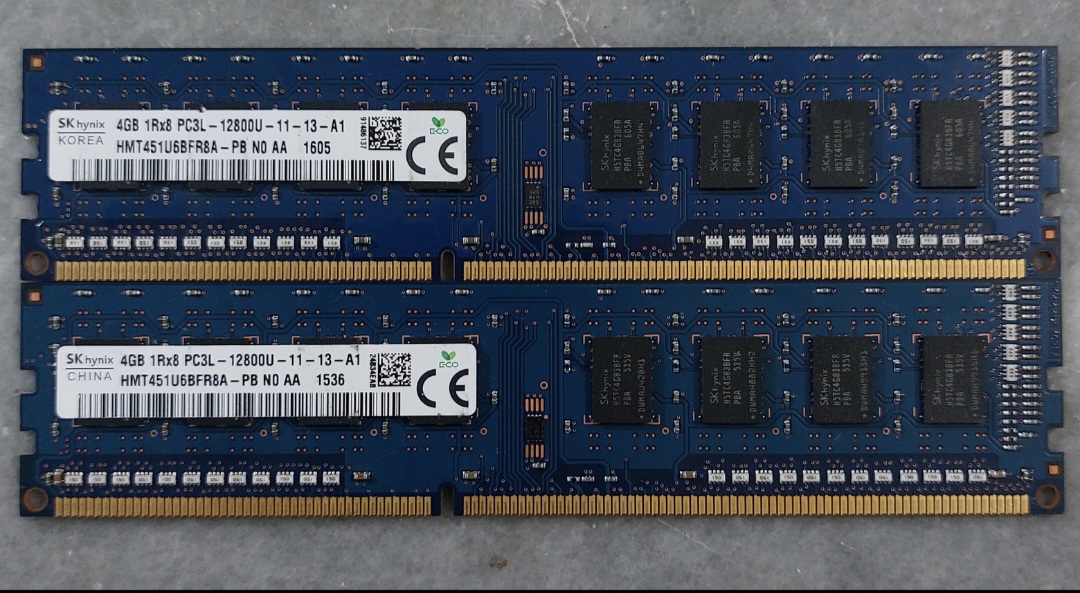 دو عدد رم sky hynix ۴ gig 1600