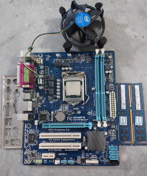 مادربرد ddr3 گیگابایت h61 به همراه cpu i5-2400 و ۸ گیگ رم استوک کاملا سالم