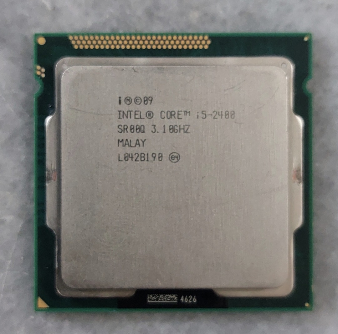 پنل پشت کیس و یک عدد باتری بایوس آکبند و یک عدد cpu i5 2400 و دو عدد رم بهصورت یک ۴ گیگ و یک ۸ گیگ کینگستون اصلی استوک